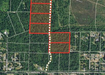 30 Acres of Development Land abutting Sunrise Master Planned Community. This offering is comprised of six (6) separate five (5) acre parcels w/ zoning of SF which allows four (4) single-family units per net buildable acre. Water, electricity, and sewer are available. The entire property contains level topography and it is heavily forested w/ mature Fir & Cedar trees which will defray development costs. Access comes off 200th St E/Howe Road via 60 ft wide easement. The location is excellent since it is just outside of South... Listing Courtesy of Northwest MLS / Windermere Prof Partners |