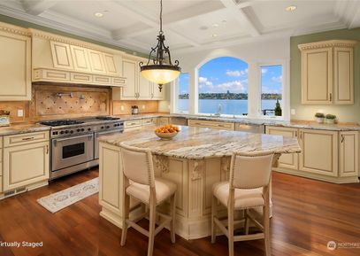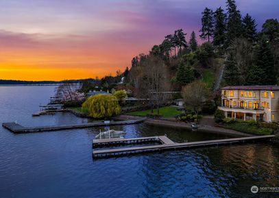 A distinctive Medina home set on 115 feet of prime no-bank Lake Washington shoreline. This residence offers breathtaking views of the lake & downtown Seattle from a serene, private setting. Ideal for all seasons, it features a gourmet chef’s kitchen, entertaining spaces & a formal dining & living room. A grand spiral staircase leads upstairs to the primary bedroom with stunning lake views, 3 additional bedrooms & a sophisticated office. The downstairs game room includes a wet bar, wine room & ensuite bedroom, plus access... Listing Courtesy of Northwest MLS / Real Residential |