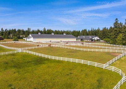 IMPROVED PRICE! Welcome to this one-of-a-kind luxury equestrian estate! This exceptional property combines top-tier equestrian amenities w/ luxurious living accommodations, making it the perfect private retreat. Incredible barn w/24 stalls, 2 wash racks, 3 grooming areas, heated tack room, 2 baths. Beautiful 2 bed apartment above barn, 80 x 220 indoor arena, heated viewing lounge & large office. 150 x 300 outdoor arena, large grass pastures & variety of paddocks. Hay/shavings barn, 3-sided equipment barn & 4-bay shop.... Listing Courtesy of Northwest MLS / Renaissance Real Estate LLC |