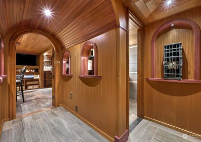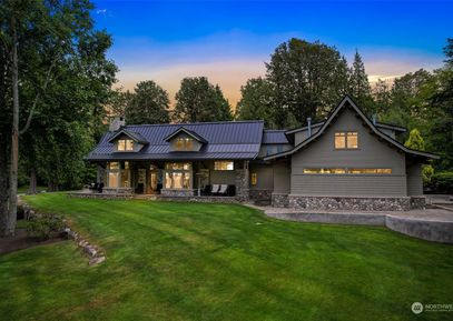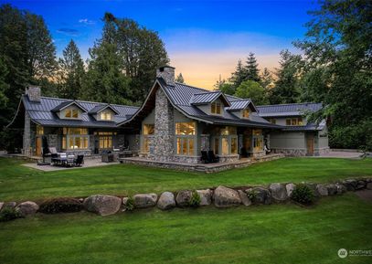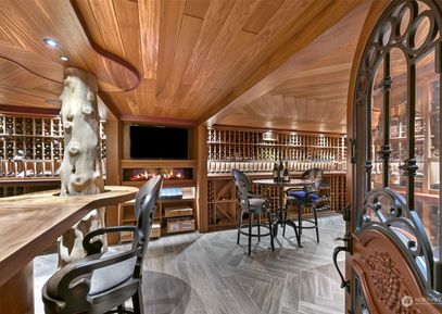 Nestled on 316' of Birch Point waterfront, this extraordinary gated estate offers unparalleled elegance. Awarded Timber Home Living magazine’s ‘Home of the Year’, this Adirondack-style home boasts 3 beds, 4.75 baths, and 5919 sq ft of robust timber-framed luxury. Designed by Finne Architects, it features hand-cut Douglas Fir timbers, natural stone, and a triple-pitch roof. The fully custom 3000-bottle climate-controlled wine cellar features exotic wood and a fully integrated lighting system. Allow your guests to reside... Listing Courtesy of Northwest MLS / COMPASS |