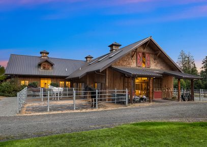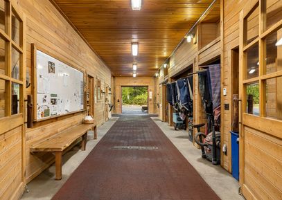 A sustainably designed equestrian facility on 8.34 acres offers everything needed for a premier equine program. Suited for hunter, jumper, and dressage disciplines, with both an outdoor arena and a regulation dressage-sized indoor arena with a heated viewing area. The 15-stall barn features individual sand turnouts for each stall, a heated tack room with individual lockers, laundry with washer and dryer, half bath, office, heated indoor and outdoor grooming stalls with hot and cold water, full hay loft, plus a beautifully... |