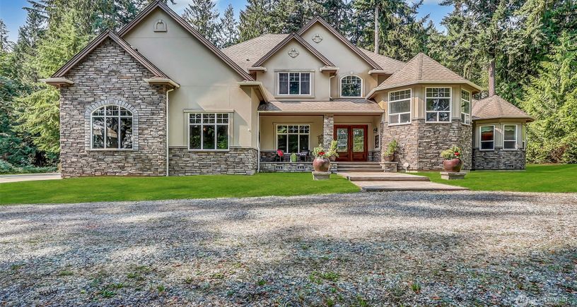 Discover country elegance in this beautiful 4-bedroom, 3.25-bath home situated on 8.4 peaceful acres, priced below assessed value. With 5,145 sq. ft. of thoughtfully designed living space, the main floor features two master suites, a dedicated office, vaulted ceilings, tile floors, and a gourmet kitchen with a propane cooktop. Upstairs, enjoy a cozy theater room and custom bar, perfect for entertaining. Ideal for multi-generational living, this home blends country charm with modern convenience. 3-car attached garage and... Listing Courtesy of Northwest MLS / Terrafin |