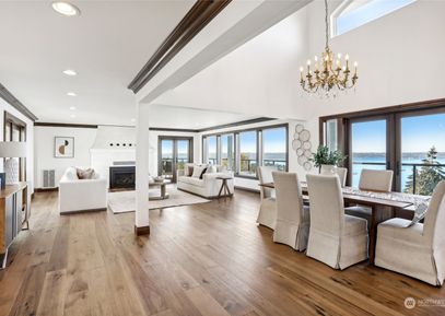 Spectacular Spanish Colonial & Mission Revival w/ expansive west facing views of the Puget Sound & Olympics. Be the first to ever live in this masterfully built home! Exquisite attention to detail throughout, including a bell tower, arches, large carved wooden doors, hand-painted accent tiles & finely crafted iron work that graces the stair railings & front gate. Dramatic foyer w/ soaring ceilings, a sprawling great room, formal dining area & main floor primary suite w/ private deck access, walk-in closet & 5 pc bath. 2... Listing Courtesy of Northwest MLS / KW Greater Seattle |