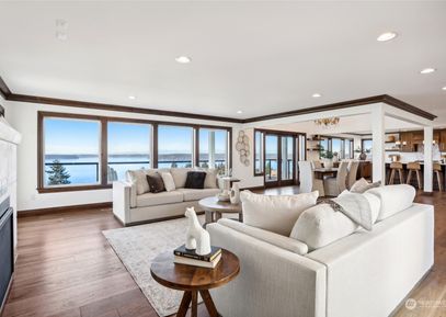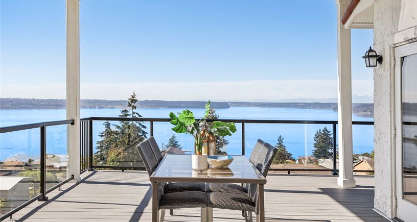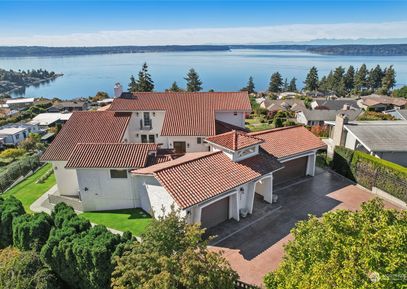 Spectacular Spanish Colonial & Mission Revival w/ expansive west facing views of the Puget Sound & Olympics. Be the first to ever live in this masterfully built home! Exquisite attention to detail throughout, including a bell tower, arches, large carved wooden doors, hand-painted accent tiles & finely crafted iron work that graces the stair railings & front gate. Dramatic foyer w/ soaring ceilings, a sprawling great room, formal dining area & main floor primary suite w/ private deck access, walk-in closet & 5 pc bath. 2... Listing Courtesy of Northwest MLS / KW Greater Seattle |