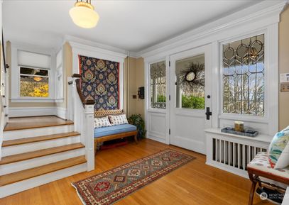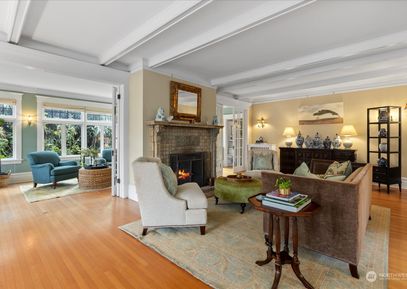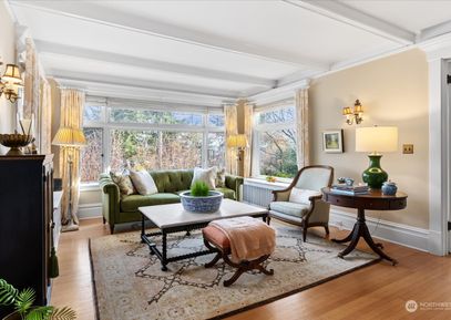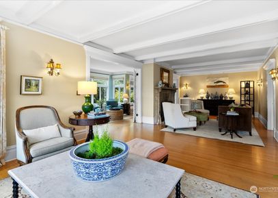 Stunning 5,000+ SF 5-bedroom home in Leschi. Sitting on a large corner lot, this home boasts a bright, open floor plan, high ceilings, w/ winter views of the lake & Bellevue skyline. This historic gem, once visited by Teddy Roosevelt, blends timeless charm w/ modern updates, including a chef's kitchen, high end appliances, state-of-the-art radiant heating system, with elegant woodwork through out. Landscape features a large backyard garden retreat plus an outdoor dining patio w/ territorial views - great for entertaining.... Listing Courtesy of Northwest MLS / CENTURY 21 Real Estate Center |