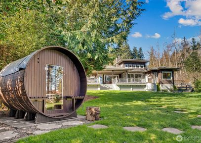 Experience luxury island living on enchanted San Juan Island. This newly constructed waterfront home offers unparalleled views and upscale amenities, including a hot tub, sauna, outdoor shower, and fire pit for ultimate relaxation. The well-appointed kitchen features high-end appliances, solid white oak cabinetry and walk-in pantry. With over 100 feet of beachfront, watch the Orcas play, launch your kayaks, or stroll along the water. The separate two-bedroom, one bath suite with full kitchen and views of San Juan Channel,... Listing Courtesy of Northwest MLS / COMPASS |