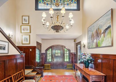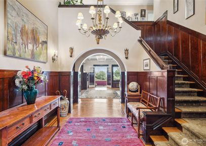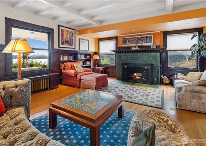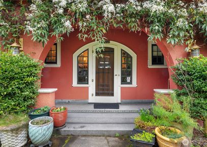 Enchanting, significant, custom 1907 home in the heart of the desirable Denny Blaine neighborhood. Sweeping views of Lake Washington, Bellevue Skyline and Cascade Mountains from this street-to-street lot. Colorful entry gardens, shingled exterior & arched doorway distinguish the facade. The interior scale, pretty rooms & floor plan lend themselves to an active household. Great kitchen! Beautiful detailing: inlaid oak floors, archways, stained glass windows, fine hardware, parlor doors w/ lace inlay, original entry chandelier.... Listing Courtesy of Northwest MLS / Ewing & Clark, Inc. |