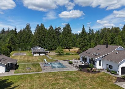 This one-of-a-kind gated Lake Stevens retreat spans nearly 5 acres of park-like grounds with the comforts of country living, offering elegance, privacy, & recreation. The grand 4,366 sq. ft. main residence radiates sophistication, complemented by a 1,000 sq. ft. guest house. Designed for relaxation & entertainment, the estate boasts a heated pool, hot tub, & sports court. A Russian fireplace efficiently radiates warmth throughout, while the easterly front porch captures morning sun. The expansive workshop suits car enthusiasts,... Listing Courtesy of Northwest MLS / John L. Scott Snohomish |