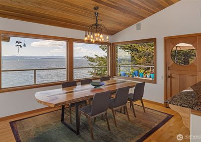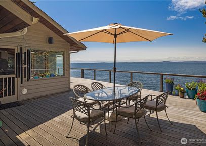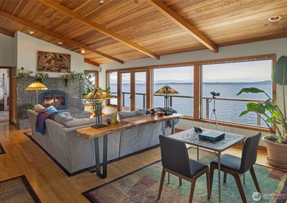 Extraordinary West Side Waterfront Retreat; Experience the best of coastal living in this exceptional west side waterfront property, boasting 125 ft shoreline on three-quarter-acre fenced and gated lot. Breath taking views of Olympic Mtns, Canadian Islands, whales ! The single level main house offers 2,232 sq ft of elegant living space featuring a spacious open great room with fireplace Primary bdrm includes lux walk in closet, heated bath floors, magnificent water views. The property also includes gorgeous detached 720... Listing Courtesy of Northwest MLS / Coldwell Banker San Juan Is. |