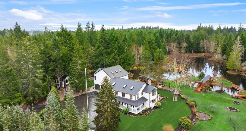Welcome to this legacy estate nestled in a secluded setting on 22.5 acres of pristine, private land in Seabeck. With Olympic Mountain views and serene territorial beauty, this one-of-a-kind retreat features a lakeside trail with bridges and boardwalks leading to a charming writer’s cottage and a PNW style pavilion. The main home has been exquisitely updated, offering a chef’s kitchen, soaring great room, and a main floor spa-inspired primary. A 60x70’ industrial shop, barn, and trail network add to the estate’s endless... Listing Courtesy of Northwest MLS / Windermere RE Bainbridge |