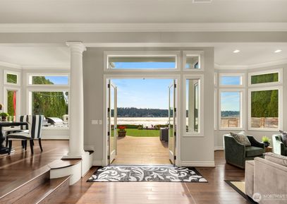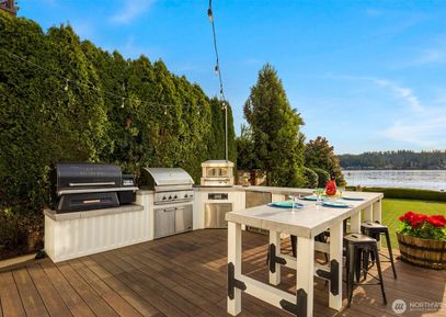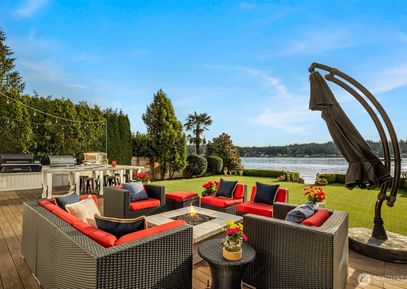Nestled on a quiet Lake Sammamish cove, this waterfront home redefines lakeside living with 50’ of private shoreline and a west-facing backyard that sets the stage for breathtaking nightly sunsets. An expansive Ipe deck with built-in outdoor kitchen, gas firepit, and lake views seamlessly connects indoor elegance to outdoor relaxation. The meticulously designed interior features a bright, remodeled kitchen with a curved bar, white cabinetry, and rich hardwoods that echo the lake's natural beauty. A hidden 350-bottle wine... Listing Courtesy of Northwest MLS / Windermere Real Estate/East |