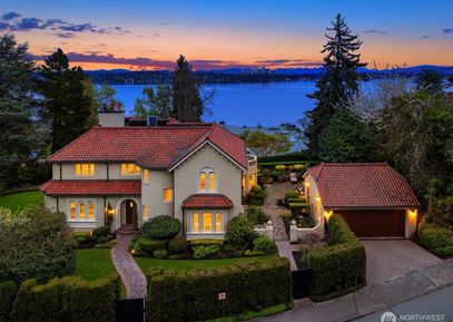 Luxurious Mediterranean Villa in the heart of Denny Blaine radiating charm revitalized in 2006. Private outdoor gardens & patios reminiscent of a European countryside estate- Breathtaking Lake Washington views. Expansive open entry, Mediterranean design. Classic Clive Christian kitchen w/ marble counters, high-end SS appliances (Bosch, Wolf, Sub-Zero). Upstairs the expansive primary suite is the highlight w/ panoramic Lake WA and Bellevue skyline views. The spa-like bath features heated marble floors, soaking tub, dual marble... Listing Courtesy of Northwest MLS / Coldwell Banker Bain |