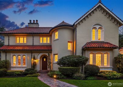 Luxurious Mediterranean Villa in the heart of Denny Blaine radiating charm revitalized in 2006. Private outdoor gardens & patios reminiscent of a European countryside estate- Breathtaking Lake Washington views. Expansive open entry, Mediterranean design. Classic Clive Christian kitchen w/ marble counters, high-end SS appliances (Bosch, Wolf, Sub-Zero). Upstairs the expansive primary suite is the highlight w/ panoramic Lake WA and Bellevue skyline views. The spa-like bath features heated marble floors, soaking tub, dual marble... Listing Courtesy of Northwest MLS / Coldwell Banker Bain |