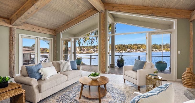 Discover a low bank waterfront gem in Indianola, where tranquility awaits on 68' of sandy beach. This home's main level offers spectacular views of Miller Bay & its abundant wildlife. Enjoy the whitewashed, oversized timbers & massive granite & river rock fireplace in the grand living room. The living room, library, dining area & kitchen all open to an expansive waterside deck, perfect for year-round entertaining. Upstairs, you will love the grand primary suite with a new balcony/deck, walk-in closet & oversized en-suite.... Listing Courtesy of Northwest MLS / Windermere RE West Sound Inc. |