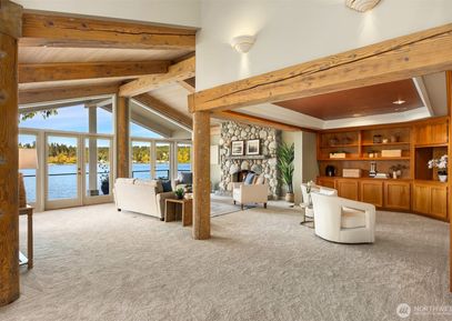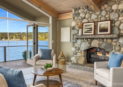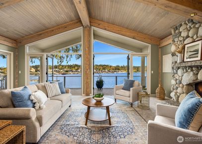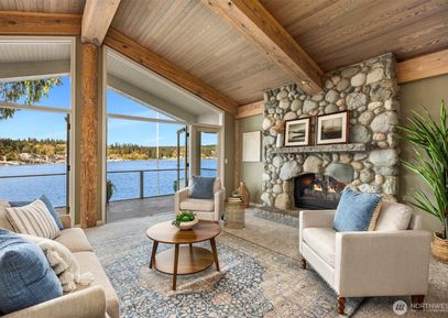 Discover a low bank waterfront gem in Indianola, where tranquility awaits on 68' of sandy beach. This home's main level offers spectacular views of Miller Bay & its abundant wildlife. Enjoy the whitewashed, oversized timbers & massive granite & river rock fireplace in the grand living room. The living room, library, dining area & kitchen all open to an expansive waterside deck, perfect for year-round entertaining. Upstairs, you will love the grand primary suite with a new balcony/deck, walk-in closet & oversized en-suite.... Listing Courtesy of Northwest MLS / Windermere RE West Sound Inc. |