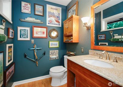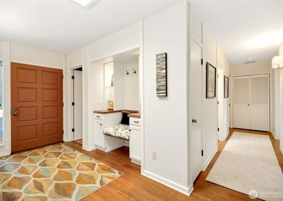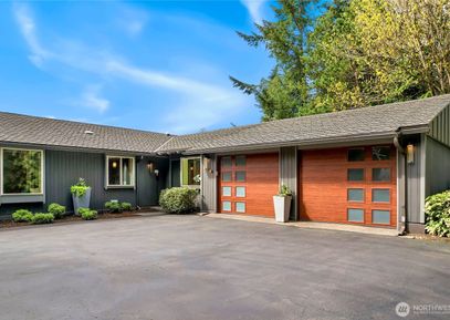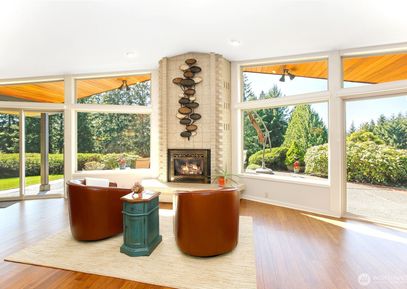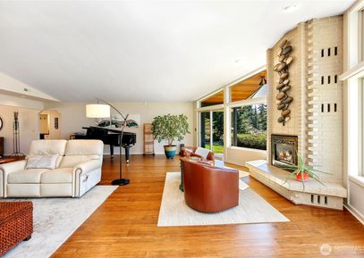 Stunning single-level Northwest contemporary custom home designed by a renowned Seattle architect! This listing includes the adjacent vacant lot, offering added privacy & value. Filled with natural light from expansive windows and skylights, the open-concept kitchen, living, and dining area centers around a beautiful fireplace with views to the patio and beyond. A split-bedroom layout offers privacy, with a beautifully renovated primary suite. Features include an office/den, flexible bonus room, and a landscaped yard with... Listing Courtesy of Northwest MLS / Redfin |