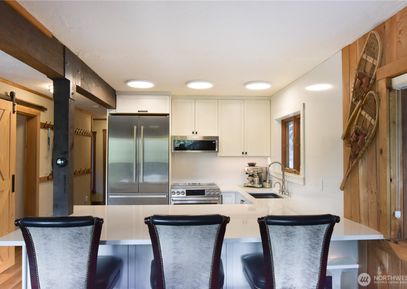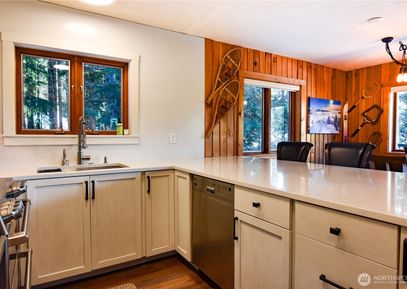Welcome home to the Alpental Life- A 2,394sf 4 bedroom, 3 bathroom private retreat nestled within an easily accessible cul-de-sac at the base of Guye Peak. Features include: New Kitchen featuring huge slab counter, custom cabinets & stainless appliances. Large west facing deck for year round entertaining. Radiant hydronic heating- cozy durable heat. Wired for electric car charging. Option to lock off & rent lower level or incorporate into living space. Inspiring mountain views at every turn and entertainment sized deck overlooking... Listing Courtesy of Northwest MLS / Windermere Real Estate/East |