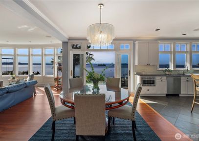 Timeless craftsmanship meets the tides at this extraordinary Puget Sound estate, offering 112 ft of private waterfront, sweeping views of the Olympic Mtns and Fauntleroy Ferry. Inside, a sun-drenched great room with vaulted ceilings, marble, and hardwoods creates a seamless connection to the sea. Two luxe primary suites, a refined library, cozy theater, home office and art studio define a home designed for both retreat and celebration. The gourmet kitchen with double ovens, gas range, and large island — anchors... Listing Courtesy of Northwest MLS / Engel & Voelkers Mercer Island |