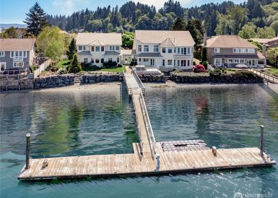 Summer Price Reduction! This exquisite luxury waterfront estate, featuring an attached ADU, boasts a PRIVATE 80-foot DOCK, Deep Water Moorage and 131 feet of No-Bank Waterfront on the highly sought-after Indianola Spit! Step inside to views of Miller Bay, complemented by travertine flooring, wall niches and expansive windows. The chef's Kitchen is equipped with a wet bar, pantry, Wolf Range, Subzero fridge and granite countertops. The primary suite includes a lavish 5-piece bath, fireplace, sitting area and private balcony.... Listing Courtesy of Northwest MLS / Professional Rlty Srvcs Sequim |