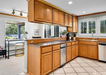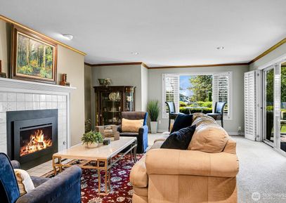 The tiled entry introduces beautifully what this home has to offer. Enjoy one level living in this elegant ground floor unit with no stairs from the garage to the front door. This 1,970 sq ft home offers 2 bedrooms & 2 luxurious bathrooms plus an additional finished room/den. Primary bdrm has a lovely sitting area with bookshelves & a cozy fireplace. The bathroom has a soaking tub, shower and a walk-in closet that completes this area. The dining area opens to the inviting formal living room with a gas fireplace, poetic views... Listing Courtesy of Northwest MLS / Windermere Northlake |