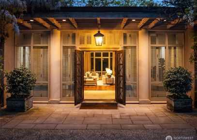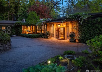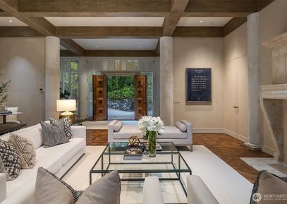 Rare architectural Estate on 3.67 acres. The Roland Terry masterpiece, built by Schultz Miller, is a Contemporary Villa of sophistication & scale. Timeless NW modernism w beamed ceilings, Venetian plaster walls, imported walnut doors & floor-to-ceiling windows create a sense of quiet grandeur. The grand kitchen/gathering room, perfect for everyday living w secondary kitchen. Dining room w hand-painted walls. Light-filled bedrooms w private terraces. Primary features fireplace, vast dressing room & dual baths. Paneled media... Listing Courtesy of Northwest MLS / COMPASS |