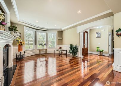 A Private Luxury Estate on Nearly 7 Acres. Experience unparalleled luxury in this 6,430 sq custom-built estate nestled on 6.88 acres in Kent's Lake Youngs area. 6 spacious bedrooms, each with its own ensuite bath, including a grand primary suite featuring dual entrances, a private lounge, a 5-piece spa bath, and a Juliet balcony overlooking the serene grounds. The chef's kitchen is a culinary dream with oversized custom counters and high-end appliances, seamlessly flowing into expansive living and dining areas adorned with... Listing Courtesy of Northwest MLS / Skyline Properties, Inc. |