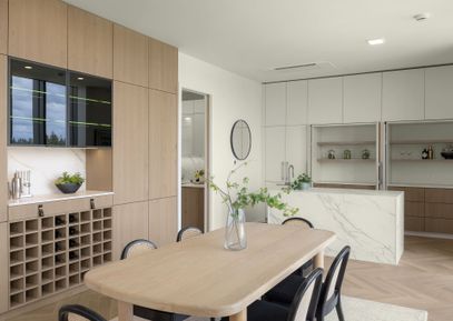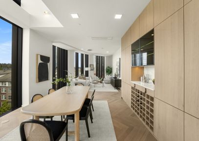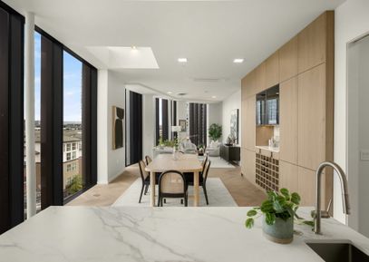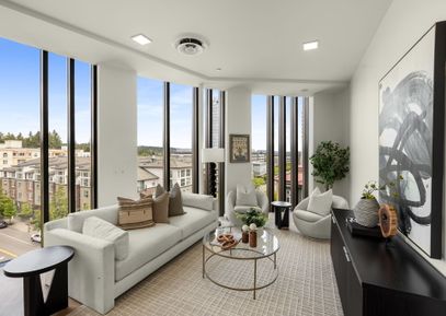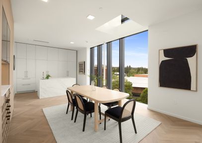 Exceptional top-floor unit at the GIS Plaza in downtown Bellevue! This 6th-floor unit boasts lofty ceilings, engineered chevron hardwood floors, floor-to-ceiling windows, and high-end custom finishes throughout. Open to the dining room is a stunning waterfall island wet bar with a stunning smart glass cabinetry backdrop. Tucked back is a Europen-style chefs kitchen that showcases Miele appliances. The generously sized primary ensuite is adorned with Grohe fixtures, heated towel rack, soaking tub, and heated floors. GIS includes... |