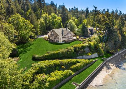 Exceptional waterfront living on 7+ acres with 254 feet of west-facing shoreline and jaw-dropping sunsets. This spectacular estate offers a RARE protected cove for mooring your boat at your backdoor, plus a separate waterfront building site, with expansive concrete bulkhead. This 6,000+ square feet home enjoys sweeping views of the crystal blue water and Olympic Mountains from nearly every room. Enjoy timeless elegance with gourmet kitchen(s), main-level primary suite with spa bath, and flexible spaces ideal for mother-in-law... |