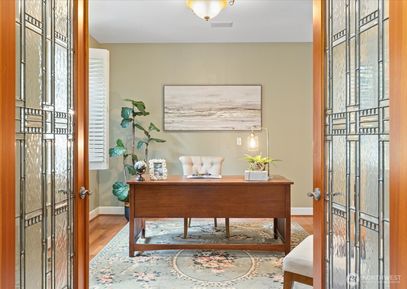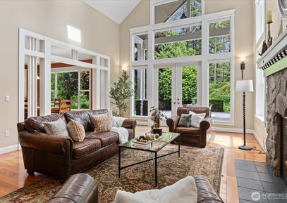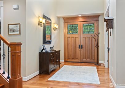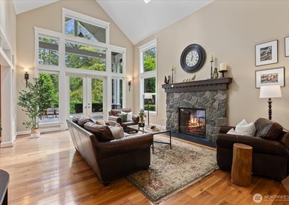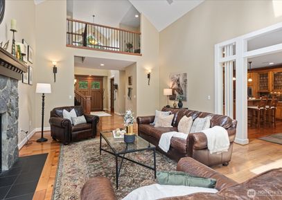 Stunning 4-bdrm Craftsman on 7.66 ac paradise w/ 2-stall barn, tackroom & outdoor arena! Covered porch opens to 2-story foyer. Rich hardwoods flow into vaulted livingrm w/ firepl. Chef's kitchen has alder cabinets, Jurastone counters, Viking gas cooktop, Subzero fridge & walk-in pantry. Mudroom w/ 1/2-bth between 3-car gar & backyd. Main level Primary has 2 walk-in closets, jetted tub & private access to outdoor hot tub. Fitness room down the hall. Upstairs has 3-bdrms, theater room, laundry & new carpet. Plus stamped concrete... Listing Courtesy of Northwest MLS / The Cascade Team |