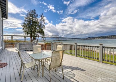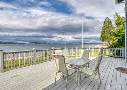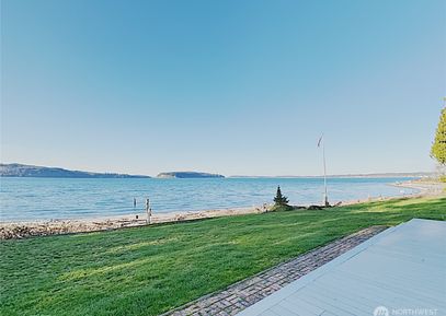 Rare no-bank waterfront home on highly desired north Hood Canal, with 80' sandy beach, expansive views of Hood Canal, Hood Canal bridge, Olympic Mts, and amazing sunsets. Home has been meticulously remodeled and upgraded in 2019, with custom stone fireplace, upgraded kitchen w/ new stainless steel appliances, new flooring, new doors/windows, new composite roof/decks/patios. New oversized, detached 2-car 780 sqft garage, with an add'l unfinished 750+ sqft upstairs for potential gym/artist's loft. Walking distance to Salsbury... Listing Courtesy of Northwest MLS / eXp Realty |