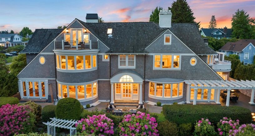 A true legacy home. This estate has been beautifully restored and updated with modern amenities. Surrounded by curved windows and ever-changing vistas, the light-filled rooms flow seamlessly for entertaining and intimate gatherings. Spacious, double-ensuite primary bedroom and generously sized additional bedrooms upstairs. 180-degree views of Seattle skyline, Elliot Bay, and majestic Mount Rainier on the horizon. Fully renovated lower level includes all new mechanicals, spa room, designer kitchenette with Subzero... Listing Courtesy of Northwest MLS / Windermere Real Estate Midtown |