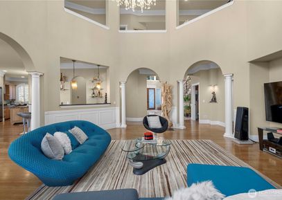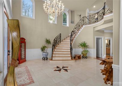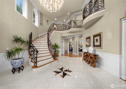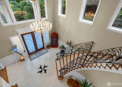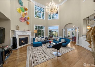 Experience refined Northwest living in this exceptional custom-built residence, showcasing over $400K in recent luxury upgrades. Nestled on a tranquil cul-de-sac within a gated enclave, this home offers unmatched privacy with exclusive access via a private community road. Soaring 20-foot ceilings, rich hardwood floors, and walls of windows that flood the space with natural light. The Chef’s kitchen is equipped w/ two built-in refrigerators, while the expansive multi-level deck includes a covered BBQ area. A spectacular... Listing Courtesy of Northwest MLS / Windermere Bellevue Commons |