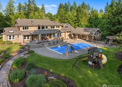 SELLER PAYS FOR 2-1 BUYDOWN! Start your rate in the 4s! Tucked away on a quiet cul-de-sac, this extraordinary shy 5000sf Home exudes luxury while offering privacy and room to roam on well over 3 acres. This custom Home boasts expansive Living spaces with a Kitchen/Great Room to amaze. Sub Zero, 2 Dishwashers, Wolf 6 Cooktop, Warming Drawers, built-in Miele Coffee, Kegerator...& room for a crowd. Luxurious Primary Suite on the Main. 3 bedrs upstairs (2 Ensuite), Pool Room, Media Room, A/C...But the real excitement comes when... Listing Courtesy of Northwest MLS / Windermere Real Estate/East |