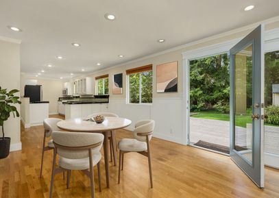 Fabulous 3 BR, 2 BA one level home on an exceptionally private, quiet, and convenient 1/3 acre in the desirable Wing Point neighborhood. Remodeled in 2010, enjoy an open floor plan with French door leading to a sunny private deck. This home has upgraded tile bathrooms and spacious kitchen with newer appliances. Enjoy solid hardwood floors throughout, a family bath that features granite countertops, laundry with ample cabinetry, folding counter and marmoleum floor, plus a primary suite with private bath. Attached garage and... |