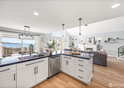 Welcome to your perch above Puget Sound—where panoramic views of the water, Vashon Island, and the Olympics follow you throughout the home. Nestled in Redondo Beach, this refined yet relaxed home boasts many updates including a vaulted great room with gas fireplace, a chef’s kitchen, new interior paint, new flooring, new appliances, recent backyard renovation, updated furnace, and an inviting flow between indoor/outdoor living spaces. Upstairs the private primary suite offers a luxe 5-piece bath and incredible views.... Listing Courtesy of Northwest MLS / COMPASS |