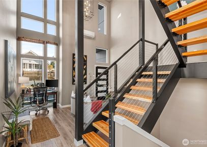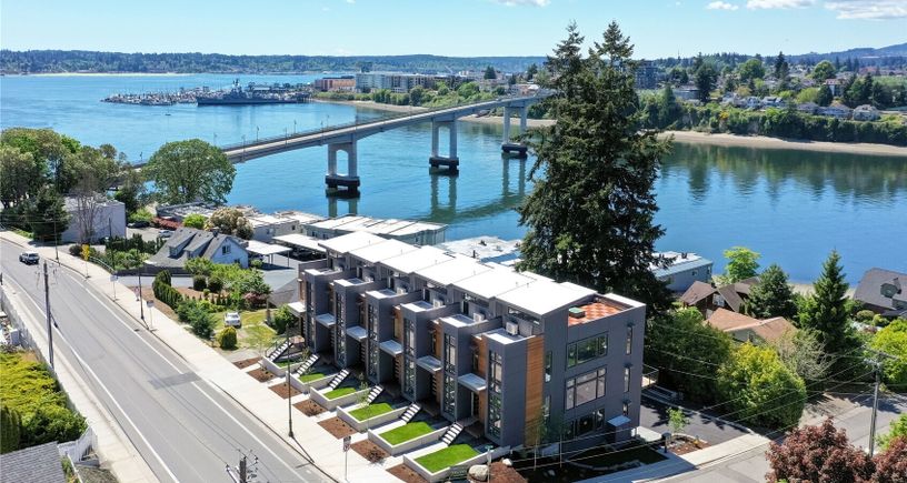 Experience luxury living in Manette Townhomes—a charming waterside community just blocks from dining, entertainment & the Bremerton-Seattle Fast Ferry. This stunning corner unit with only one shared wall showcases Olympic Mountain & water views from large windows. Watch whales & boats glide by from two decks, including a spacious rooftop. Features include soaring ceilings, quartz counters, elegant lighting, a stylish electric fireplace & efficient HVAC. Primary suite offers a walk-in closet & dream shower. Low-maintenance,... Listing Courtesy of Northwest MLS / Special Agents Realty |