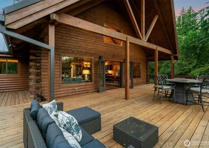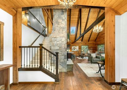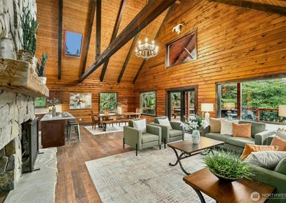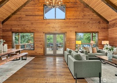 A lodge-style retreat on 8.8 acres; a mix of open pastures & privacy. Designed for those who crave space & freedom to live as they choose. Step into the dramatic great room w/ soaring ceilings, exposed beams & a chef’s kitchen built for gathering. 2 main-floor bedrooms, an office area & a full bath w/ a copper soaking tub. Upstairs, a true primary escape awaits: a loft, private deck & an updated en-suite bath. Downstairs: 2 bonus rooms, 2nd office, ¾ bath & a patio w/ hot tub. The barn is pure function: horse stalls,... Listing Courtesy of Northwest MLS / COMPASS |