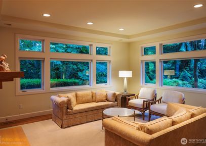 Here is the chance of a lifetime to own the most private, architecturally designed, one owner estate property in the Mill Creek Country Club. In the Juniper neighborhood this home is perched on a private peninsula which overlooks a professionally landscaped yard blending seamlessly into acres of Nature Preserve. Multiple vistas from every room - with no visible neighbors. The custom design features clear cedar soffits, 9 & 10' ceilings, transom windows, stunning finishes (you have to see it to appreciate the beauty) 3 ensuite... Listing Courtesy of Northwest MLS / Windermere Real Estate/M2, LLC |