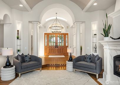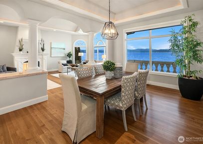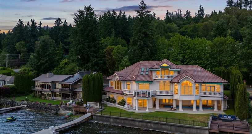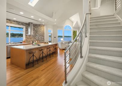 Prepare to be wowed! This stunning gated Mediterranean estate on the sunshine coast of Lake Sammamish boasts 120’ of prime waterfront, a newer dock with boat lift, manicured grounds,emerald lawns as well as a party-perfect pool which happily doubles as a hot tub! This is the ultimate entertainer’s dream house: 2 stylish top-of-the-line kitchens, wine wall, & a state-of-the-art integrated smart home system, including a/v & security system with 9 cameras, ensuite bedrooms, & 2 primary suites- 1 on the main. Newly refinished... Listing Courtesy of Northwest MLS / COMPASS |