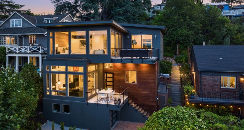 Spectacular Lake Washington view home just steps from the shoreline! Thoughtfully remodeled down to the studs, this home features floor-to-ceiling windows framing panoramic lake, city, and mountain views. The main level features milestone flooring, a gas fireplace, bed/bath, and a view deck ideal for entertaining. Upstairs, enjoy an expansive deck with unobstructed views, versatile flex space, and a luxurious primary suite with a 5-piece bath and custom walk-in closet with a washer/dryer. The lower level includes a media... |