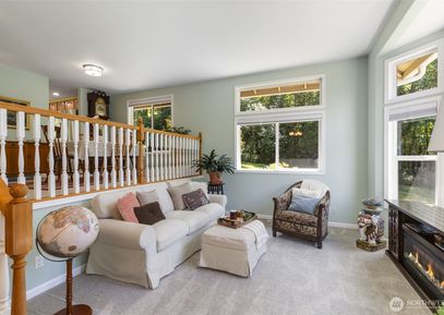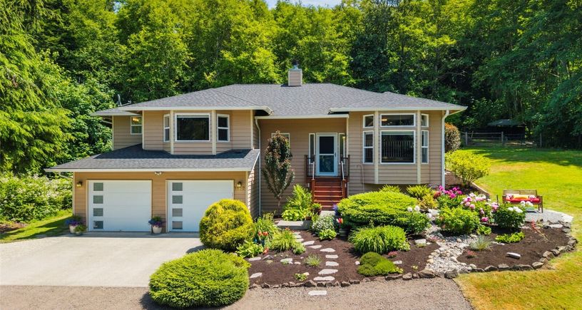 Tucked away on 1.25 private, sun-drenched acres with a peekaboo view of Hood Canal, this beautifully maintained 3BR/2BA home in Lofall offers comfort, quality, & tranquility. Natural light pours into the sunken living room through multiple transom windows. A spacious kitchen features SS appliances, an eating peninsula, & ample cabinet storage. Just off the kitchen, a 2nd living area offers a cozy wood-burning fireplace. Step outside through French doors to a stunning Tigerwood deck & a beautifully landscaped, low-maintenance... Listing Courtesy of Northwest MLS / Windermere RE West Sound Inc. |