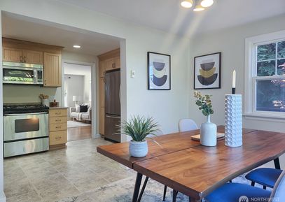 Don’t miss this Magnolia charmer! Amazing opportunity on a tree-lined street with sidewalks & ample parking. Nestled behind a white-picket fence on a large lot w/ beautiful, mature flowers & plants, this home offers a functional layout, hardwood floors, and an inviting deck & back yard for lounging. Main level includes 2 bedrooms & living room w/ stone fireplace, as well as kitchen, featuring stainless steel appliances & Corian countertops. It opens to a sun-filled dining room which looks out to a huge wrap-around deck... Listing Courtesy of Northwest MLS / RE/MAX Metro Realty, Inc. |