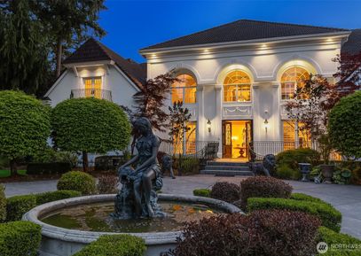 Introducing a rare legacy estate, a Colonial masterpiece. A celebration of timeless elegance, architectural distinction, and serene Pacific Northwest living. Enter through wrought iron gates and arrive at a stately circular drive, anchored by classical fountain. Dramatic symmetry, arched windows, and a breathtaking double staircase set the tone for the luxury within. Soaring ceilings, intricate millwork, rich hardwoods, and regal chandeliers enhance every room. Resort-style amenities abound: glass-enclosed pool and spa,... Listing Courtesy of Northwest MLS / COMPASS |