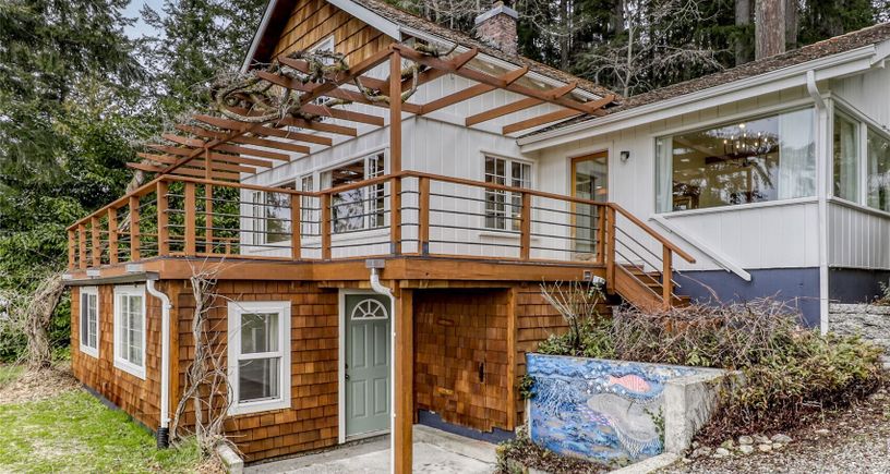 Extra living space in this sunny, waterfront home with gorgeous views of the Sound, and Olympic Mountains. Recently remodeled while maintaining it's rustic vibe and features new hardwood flooring, beautiful large view windows, a wet bar off the kitchen, a roaring wood stove insert, and private beach access. The lower bonus room with ensuite bath, has a separate entrance perfect for office or guest quarters. The beautiful view deck is trellised with 60 y/o wisteria and has plenty of space for outdoor dining, entertaining... Listing Courtesy of Northwest MLS / Charter Real Estate |