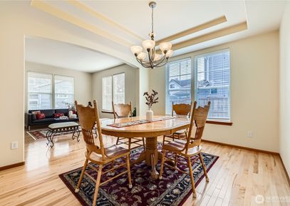 Hardwood floors throughout, skylights, stainless steel appliances and a pantry. Custom made cabinets in den/office. Full bathrooms have smart mirrors for added convenience. Fully fenced, paved side and backyard, a front lawn, and a lovely gazebo and community park across home— perfect for entertaining or relaxing. The home is freshly painted and includes newer appliances and central air conditioning- for added peace of mind. Ideally located just minutes from shopping at Alderwood Mall, Woodinville, Walmart, and WinCo.... Listing Courtesy of Northwest MLS / Aarvee Realty Inc |