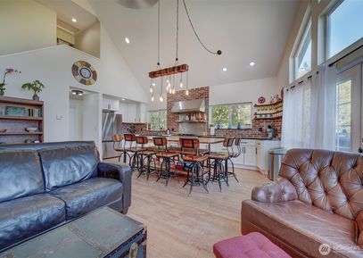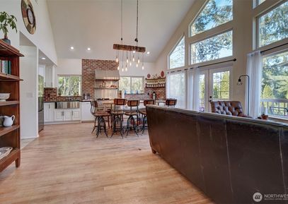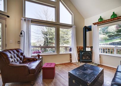 This Hansville cabin in the woods is a must see! Experience Driftwood Keys signature stunning sunsets overlooking the Hood Canal from the large front deck of this Lindal A-frame home. Great room living at its finest, this fully remodeled, eat-in kitchen boasts seating for 12, hardwoods and new appliances. Cozy-up in the living room with the corner stove and plenty of light provided by floor to ceiling windows. On the upper floor, the ultra-private master suite has a spa meets tree house feel, complete with jetted tub and... Listing Courtesy of Northwest MLS / eXp Realty |