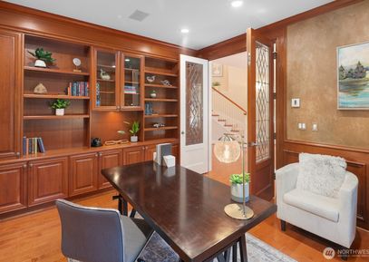 Experience refined living at its best with this impeccably maintained & thoughtfully designed 5700+ sq. ft home that expresses Luxury, Sophistication & Warmth. Situated nicely on a serene shy acre setting in one of Bridle Trails most sought-after neighborhoods. Impressive Chef's Kitchen with massive island, gorgeous counters & Premium appliances. Sun drenched living spaces with expansive windows will put a smile on your face. Space for everyone. Impressive main floor den, Dual bonus rooms, main level bedroom with nearby... Listing Courtesy of Northwest MLS / John L. Scott, Inc. |