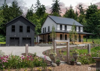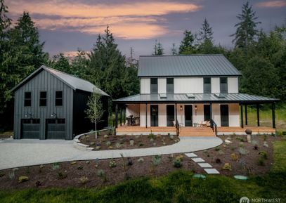 Welcome to your dream home in desirable Poulsbo–luxury, privacy & nature on nearly 2 acres. This new construction features 9’ ceilings, white oak floors, 8’ doors, custom iron railings & designer lighting. Enjoy a chefs kitchen w/ rift-cut oak cabinetry, oversized island & ample storage. Primary suite & main-floor en-suite bedroom offer spa-like baths w/ heated floors. Upstairs, a 3rd bdrm & large media space. Office w/ porch access. Bosch zoned ductless throughout. 889 sq ft unfinished space above the garage & hobby... Listing Courtesy of Northwest MLS / Charter Real Estate |