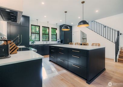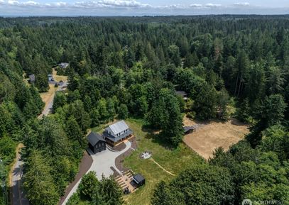 Welcome to your dream home in desirable Poulsbo–luxury, privacy & nature on nearly 2 acres. This new construction features 9’ ceilings, white oak floors, 8’ doors, custom iron railings & designer lighting. Enjoy a chefs kitchen w/ rift-cut oak cabinetry, oversized island & ample storage. Primary suite & main-floor en-suite bedroom offer spa-like baths w/ heated floors. Upstairs, a 3rd bdrm & large media space. Office w/ porch access. Bosch zoned ductless throughout. 889 sq ft unfinished space above the garage & hobby... Listing Courtesy of Northwest MLS / Charter Real Estate |