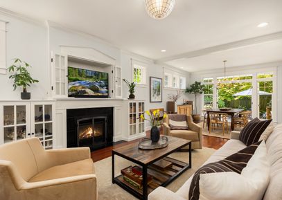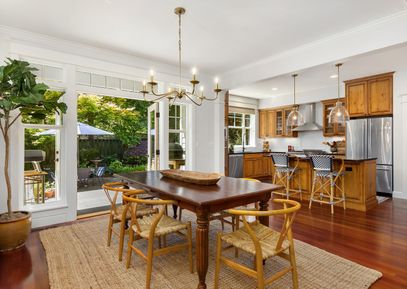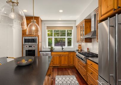 Classic Shingle-style home in Rolling Bay with dreamy backyard and fabulous floor plan. Walk to beach, coffee shop & grocery store. This quality-built home boasts high-end finishes throughout with gleaming cherry floors & chef's kitchen in an open great room that flows seamlessly onto a private flagstone patio. You'll love the Viking cooktop, high-end Wolf oven, and ample sized pantry, plus appliance storage in the mudroom. The luxurious primary suite bath enjoys marble countertops & tile shower, plus soaking tub. Plenty... |